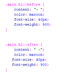 The code using the pseudo-element with the double colon will put a tilde before and after the text that I have written below.