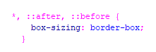 The above is an explanation of Pseudo elements, and how they are used; however, you will see that in our code, it is being used on box-sizing. The star is used to say that they want this best practiced used on all of the elements, and even any pseudo-elements, the comma is used to separate the rules automatically with this code.
