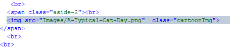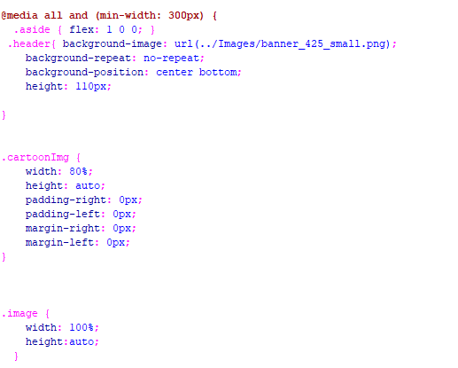 Ok, weather you create an aside-3, or just use a span to create this div, which we are putting a Garfield cartoon into, you will find that when your image is squeezed into the cell phone size, that it will want to overflow, its container. In order to prevent that we are going to throw some new rules into our media queries for our 300 size. So, these are our new rules for that image.