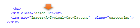 You will notice that I had taken the div with the cartoon out when it came to ordering the other sections. I did that by using a span tag on it.