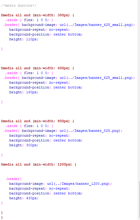 Now look at the CSS. We start by loading the 1200 size banner in the regular CSS code.