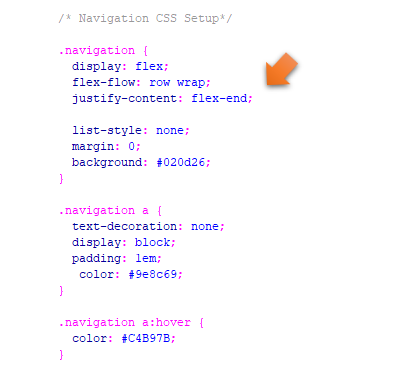 As you can see, all of our flex stuff is going into the main rule of .navigation, itself.