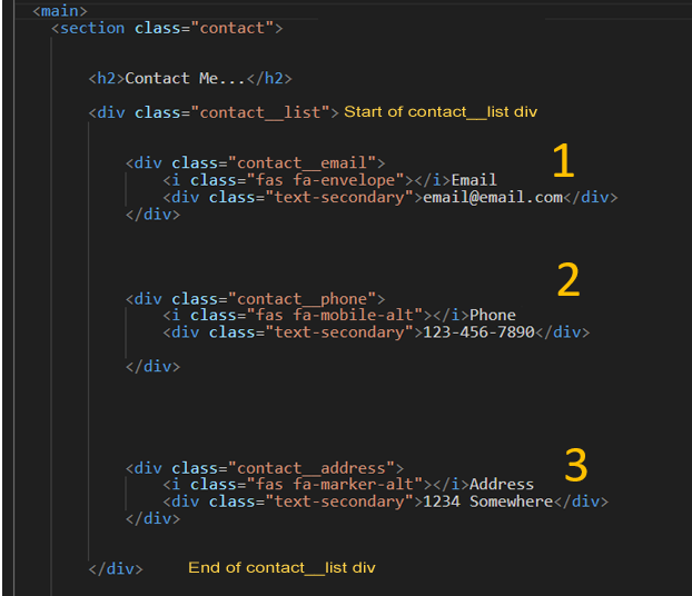 Notice that the contact__list class div encircles the individual sections of divs.