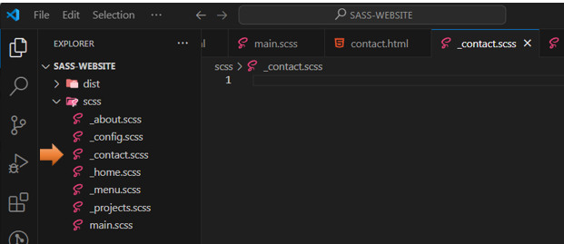 Inside of the scss folder, we will be creating our contact.scss file