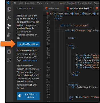Now if you have a folder that is not pointing to any repository, it will let you know as soon as you open this icon on the left. This is a site that I am not quite ready to be public, I do not want it uploaded to a GitHub site at this time, and so, it is not connected to a website. Nor does it need to be.