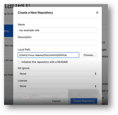 Important if you want to move your entire site, you cannot and must not do this from the GitHub website. It must be moved from the GitHub desktop app to the GitHub website from the top button, and it will create the site for you on the GitHub website.