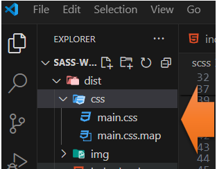 Now if everything worked correctly you can open up your dist folder and you will see your new CSS folder with two new files that were automatically created.This folder now contains both a main.css and a main.css.map file. And all of that SASS code,that we just wrote, was converted into regular CSS, which browsers understand.
