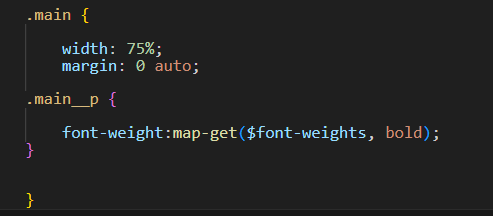 When you nest, you can go inside of the rule that you just wrote for .main, and add these style properties to them. We want to target that paragraph in the html that we saw in the .main rule.