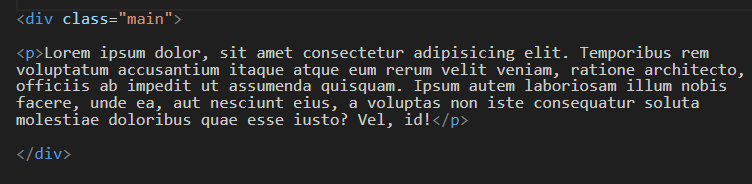 Let’s take a look at our paragraph in the html file. You will see that we have a div, and that div has a class of main.
