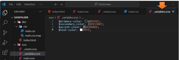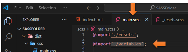 Notice that we do not need the underscore or the extension of .scss when we import it.
