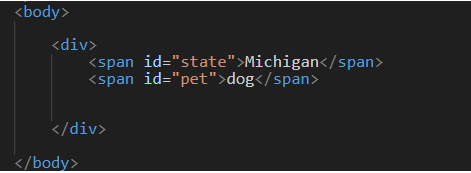 Here we have a <div> tag, inside of that <div> tag, we have a span, and each one of our spans have a different id name.