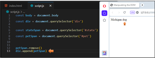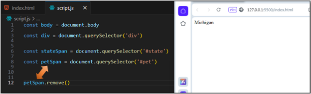 Now let’s say we want to do the same thing but be able to do if from the parent element and not from the specific element itself. You will see that using remove is a bit simpler, and basically does the exact same thing. So, you might decide to just stick with the previous method of doing things. But this option is also available, if you so desire to use it.