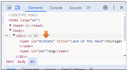 And when you take a look at things in the Elements tab of Inspect Elements, you will find that our state span no longer has the attribute of title.