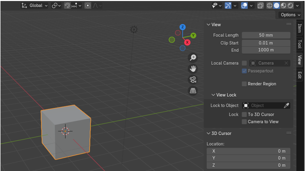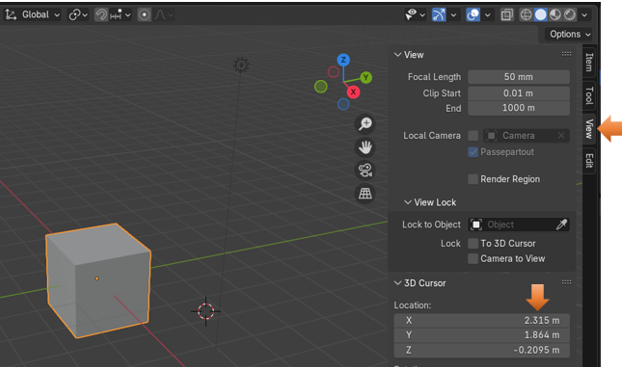 You have a hidden panel on the right side of the viewport. This panel can be accessed by clicking on this tiny little arrow. You can also click on the letter N on the keyboard to toggle open and closed this little panel.