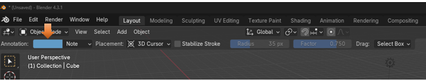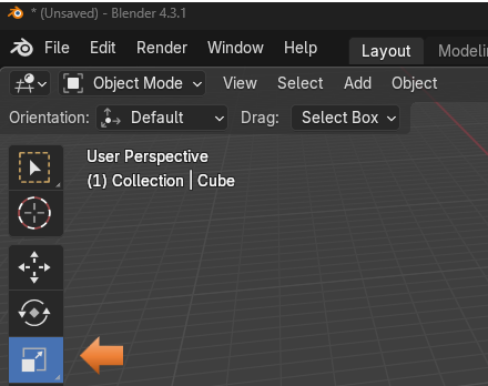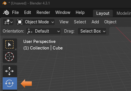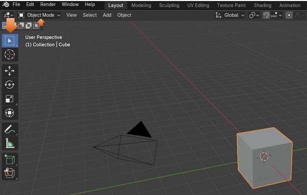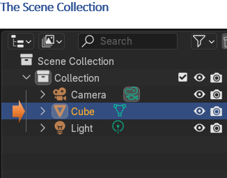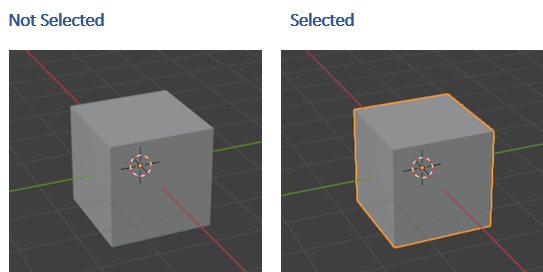 Of course, in order to be able to do anything with any object it Blender, you must first make sure that you have it selected. You will know it is selected when it has an orange line around it, and you get to see that orange line by simply clicking on the object in the Scene, or in the Scene Collection, which you will find in a panel off to the right of the view port.
