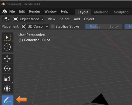 The Tool panel inside of Object mode, contains 10 buttons, which represents 10 different tools in which you can access.
