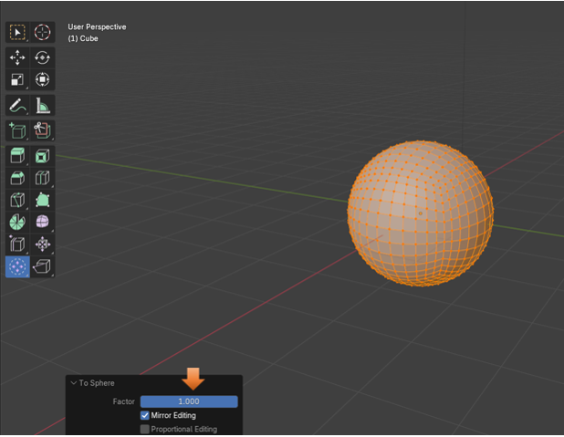 Now we can grab the To Sphere tool, and it will actually do something.
