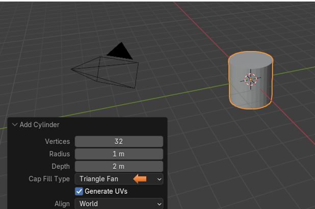 Warning, you will find this tool will not work on everything. For example, take this cylinder. When we bring this cylinder in from Object mode, we want to make sure that we set the Cap Fill Type to Triangle fan.