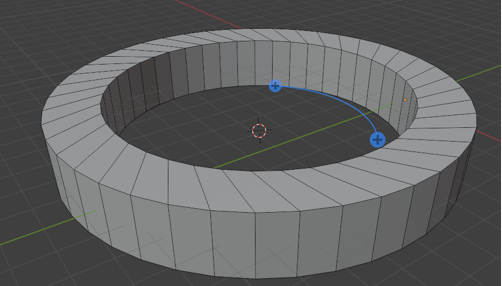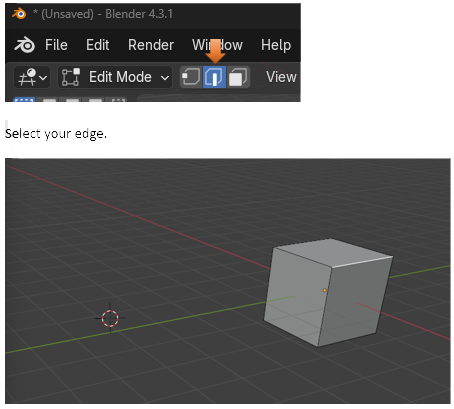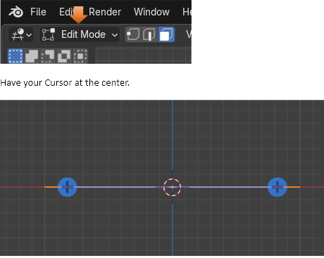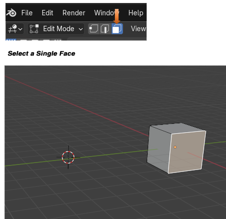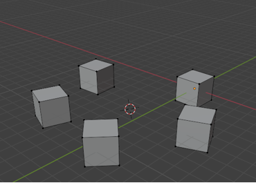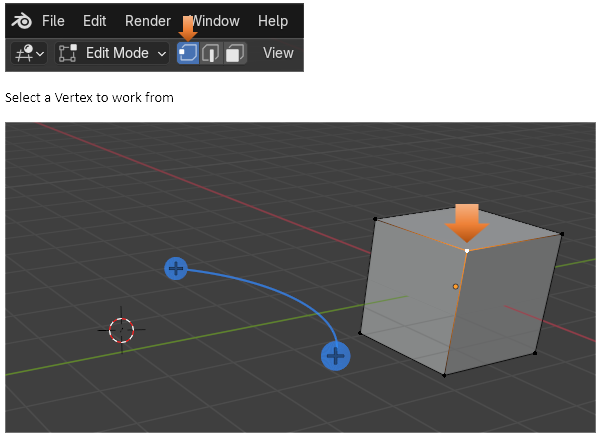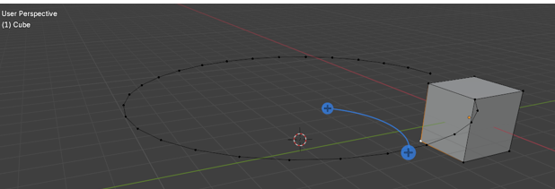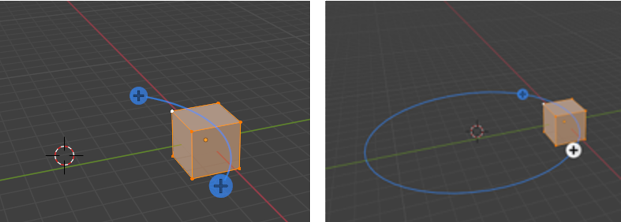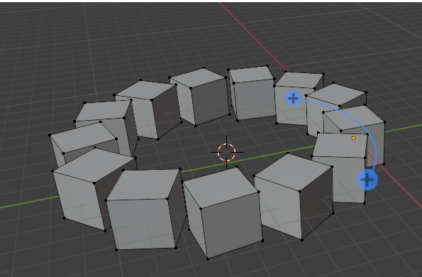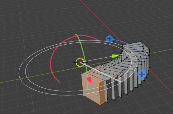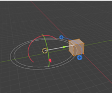 Here is a cube, and we took it, and spun it around the cursor. To do this, you want to select the entire cube with the A key, hover over one of the plus signs (given to you from this tool) until you see a blue circle appear.