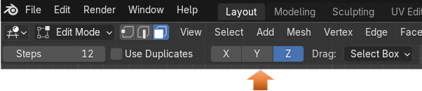 You will notice that at the top of the app, while in the Spin tool in edit mode you will see this X, Y, and Z. These are the different axis in space in which you can work in.