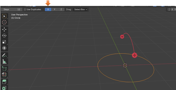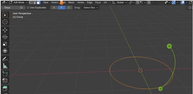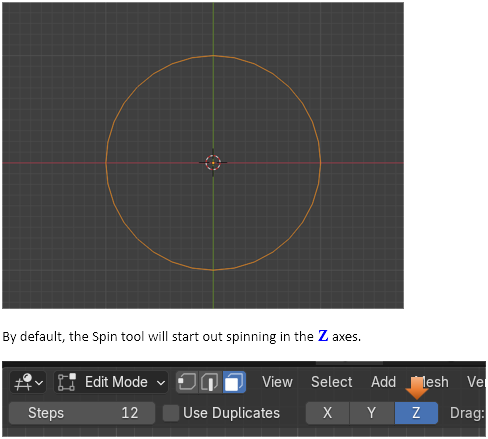 Make sure you have the circle selected. Grab the spin tool and start spinning the circle. You will notice something strange. The spin tool is spinning the vertices, but it is not doing too much because everything is in the same Z plane Axes.