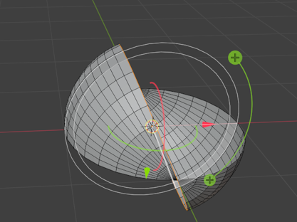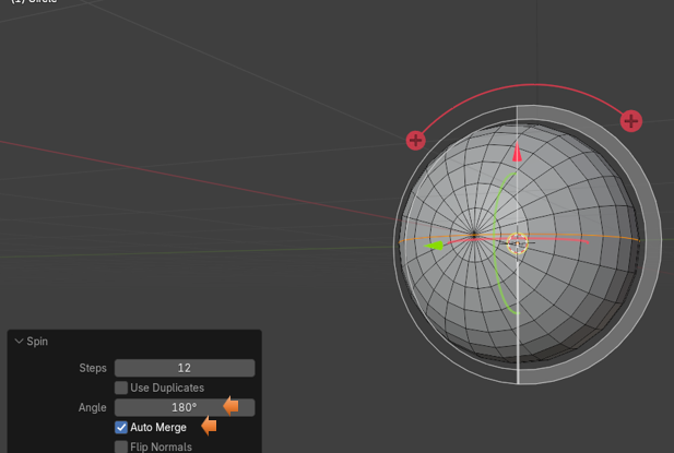 Now hover over the plus sign until it turns into first that circle, and then the spin gizmo, and start your spin again. This time, you see we are spinning our circle mesh into a sphere.