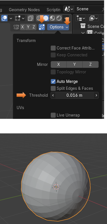 It should auto merge when it gets close enough, to bring the two halves of the sphere together..