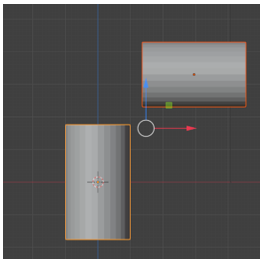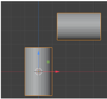 To join an object together, we select both objects and then hit the ctrl key with the J key on the key board. The image below is not yet joined because you will see that the top cylinder has a red selection outline around it, and the bottom cylinder has an orange one.