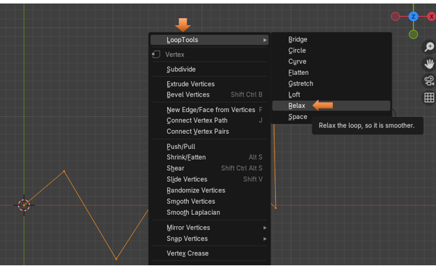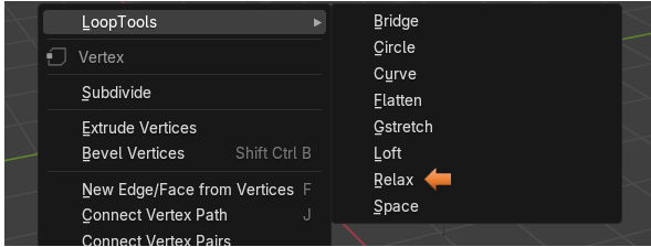 Now with the entire curve selected we can start using the Relax tool from the Loop tools. So, right click and choose Relax.