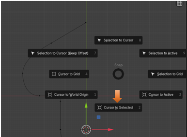 Press Shift and S to bring up the Cursor menu over lay. We want to select Cursor to Selected.