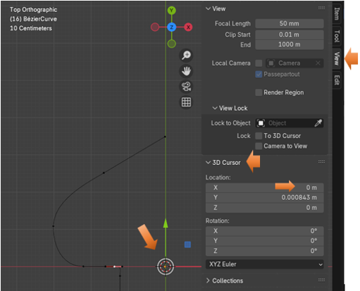 Now under 3D Cursor in this panel, inside of the View tab, set the 3D Cursor Location for the X to be 0.