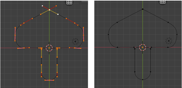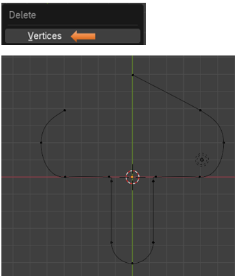 Hit the X key and delete this point. Choose Vertices for the Delete action. Your curves should have maintained their curves, by having the handle changed to Free, as we did above.