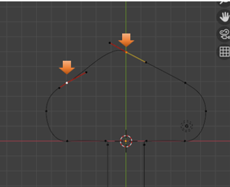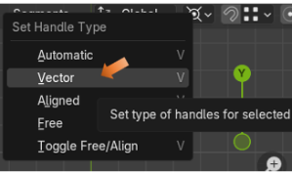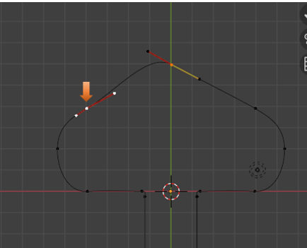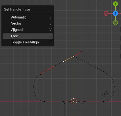 We want to select this end point right here, and first make sure that it is not already a Free handle type, if it is not, we want to change it to Free.