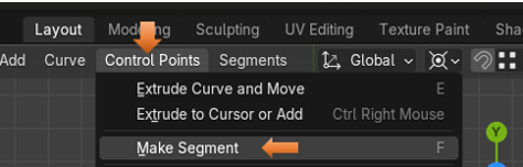 Now go up to the top Sub-Menu, and Select the Control Points menu. From there we want to select the Make Segment option.