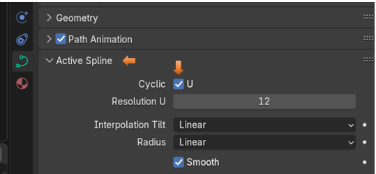 We want to go to the Active Spline section, and directly under this you will see a check box for Cyclic. As soon as we check the box for Cyclic, you will notice that the opening that we have in the curve will instantly close.