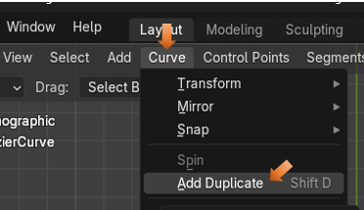 Now we need to add a duplicate to that curve that we already have. To do this, we come up to the Sub-Menu, Choose Curve, and then pick Add Duplicate. Immediately, HIT the Escape Key, to kick the new curve off of your mouse, and have it deposited in the exact same place as the first curve.