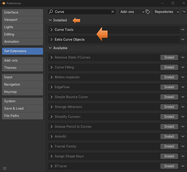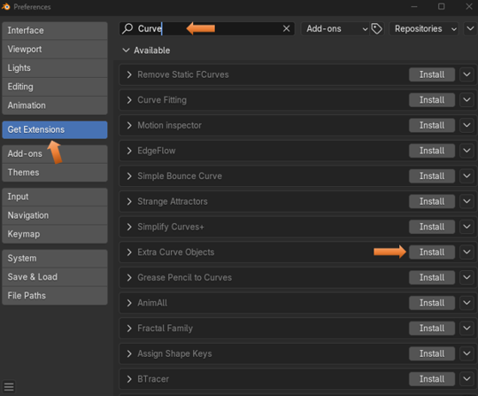 To get into more complex curves we will need to add a couple of extensions. These used to be an add-ons, but with the latest versions of Blender, you will now need to go to Extensions to add them.